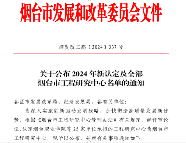 烟台市工程研究中心是烟台市科技创新体系的重要组成部分,是市发展改革委根据科技强市和绿色低碳高质量发展的战略需求,以培育科技力量为主攻方向、以科技赋能产业为实施路径、以服务国家省市重大战略任务为发展目标,由研究开发能力和综合实力较强的高校、企业、科研院所等企事业单位共同设立的创新联合体,是市内最高等级的技术创新平台之一。