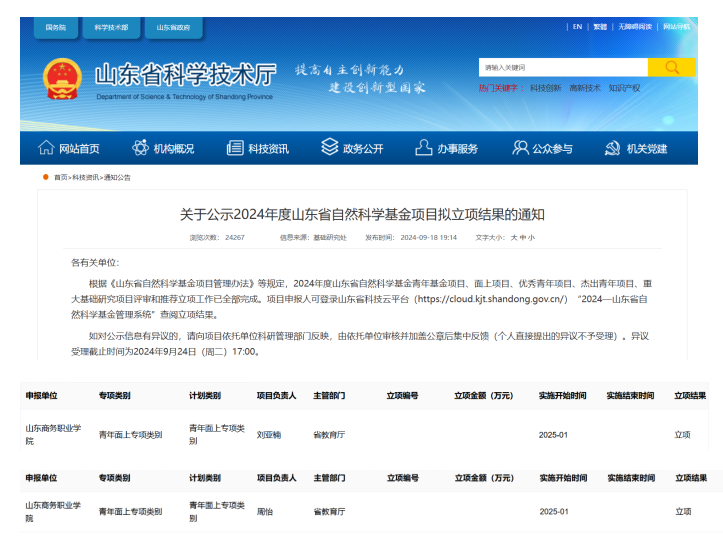 近年来,学校高度重视科研工作,积极践行“四色工程”,在“科研兴校、人才强校”战略引领下,学校科研水平及科研服务管理水平持续提升。在科研项目申报方面,科研处精准对标国家、省市自然和人文社科领域相关战略布局,加强有组织科研,积极提高项目申请与相关指南的契合度。科研处与二级院部上下联动,精心组织、科学筹划,开展系列申报宣传动员、专题辅导等科研活动,组织校内外专家对项目选题、论证、形式进行全方位指导,并对项目申请书进行反复修改提升质量,有效提升了科研项目的申报质量和成功率。此次高水平科研项目成功立项,不仅是学校依托健康粮油创新技术应用山东省工程研究中心、烟台市粮食精深加工技术重点实验室等科研平台,加强与行业龙头企业、知名高校以及科研机构合作的成功典范,也是学校完善科研管理机制和创新项目论证建设取得的成效与进步。