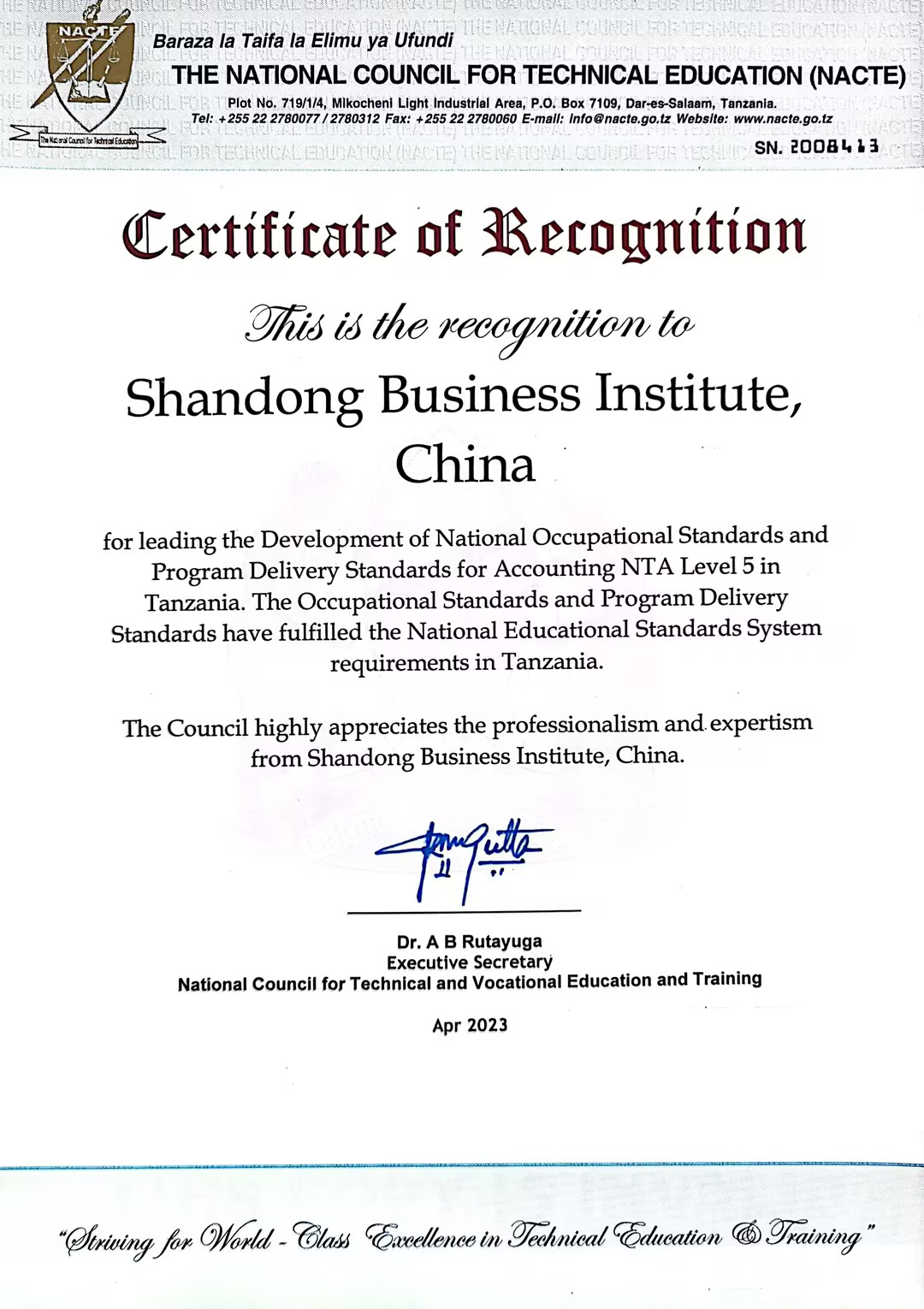 近日,从中非职业教育联盟传来喜讯,我校牵头开发的“跨境电子商务技术员4级职业标准”“会计员5级职业标准”及相应配套的专业教学标准通过了坦桑尼亚国家职业教育委员会审核,获得官方认证,正式纳入坦桑尼亚国家职业教育体系。